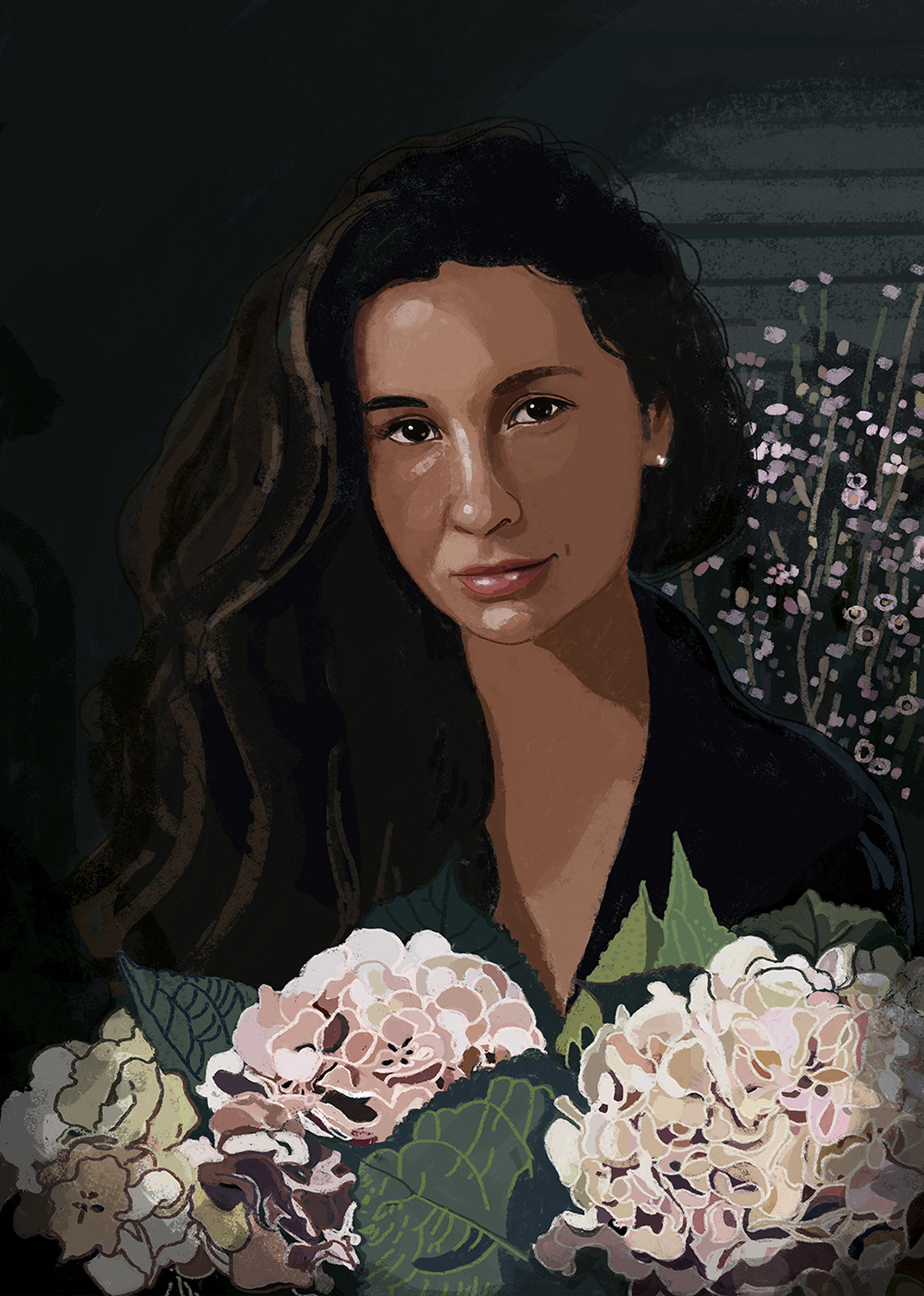 Osoba sportretowana prowadzi kwiaciarnię i uwielbia hortensje.