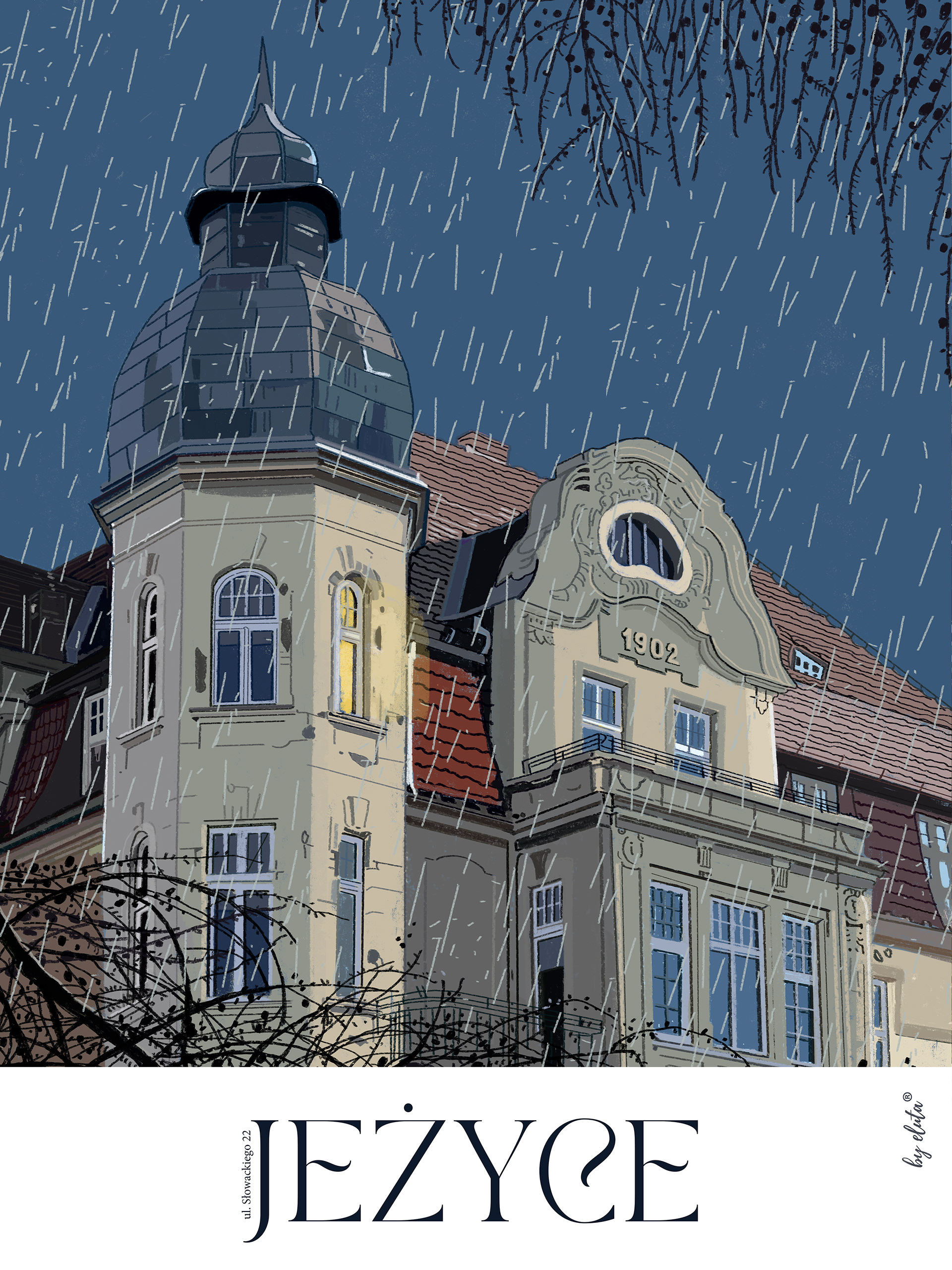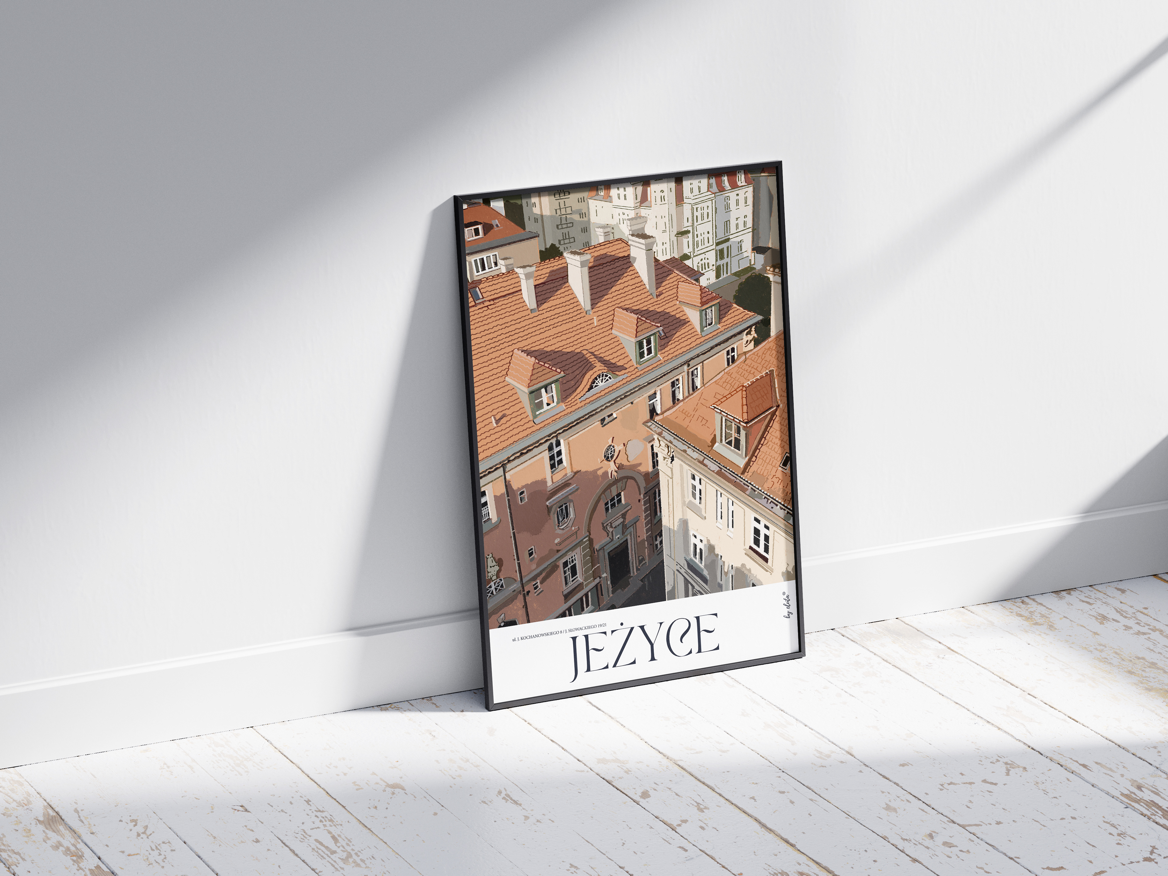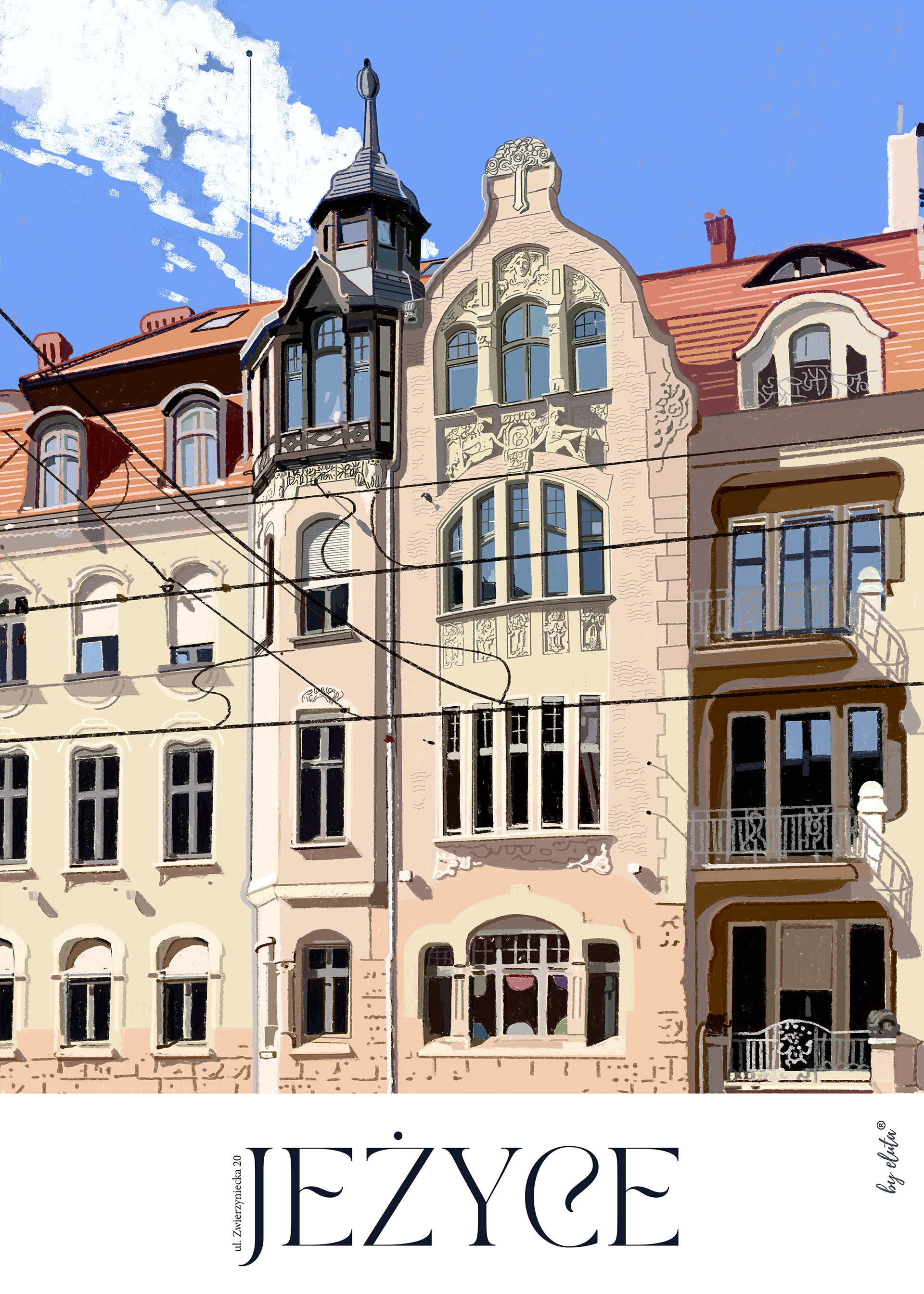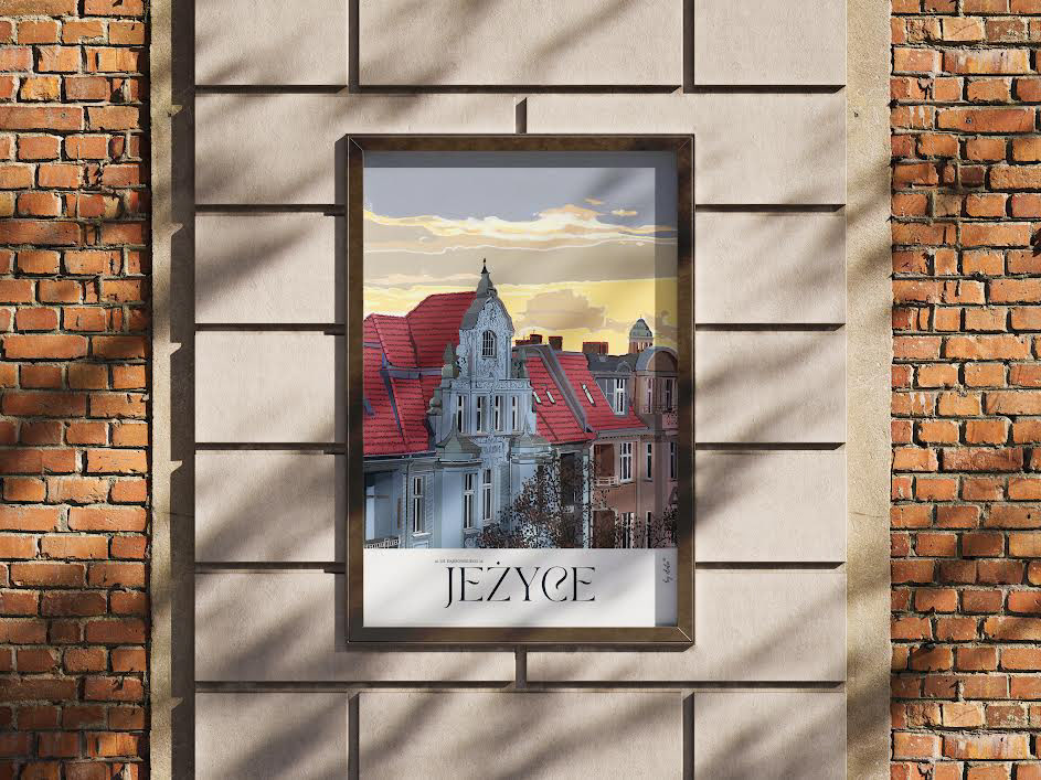 1 kwietnia 1900 roku Jeżyce, Łazarz oraz Wilda - dotąd wsie - zostały przyłączone do Poznania i stały się jego dzielnicami. W 2025 roku przypadła 125 rocznica tego wydarzenia. Jako mieszkanka Jeżyc (od 20 lat), ilustratorka oraz właścicielka mieszkania z balkonem, z którego rozciąga się widok "za milion" :-) - na piękną kamienicę ze smokami oraz poznańskie niebo - wpadłam na pomysł, aby zilustrować najpiękniejsze budynki tej dzielnicy. W planach mam stworzenie kalendarza oraz mapy dzielnicy z trasą po wszystkich zilustrowanych obiektach. Do tej pory regularnie, co miesiąc, powstawała ilustracja kolejnej kamienicy. Plakat w formacie 50x70 cm drukowany jest w technice fine art i wieszany na mniej więcej miesiąc w zewnętrznej gablocie zaprzyjaźnionej kwiaciarni, w centrum dzielnicy, aby mieszkańcy mogli oglądać ją bez ograniczeń. Wydruki w formacie 50x70, 30x40.